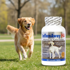 Joint health is important for dogs of all ages and activity levels. You can help keep your dog’s joints healthy and free moving by giving him InflamAway HA with hyaluronic acid for dogs every day. Whether your dog is young or elderly, a hiking companion or a retired friend, you want to make sure that you are providing your dog with the best in joint support formulas.